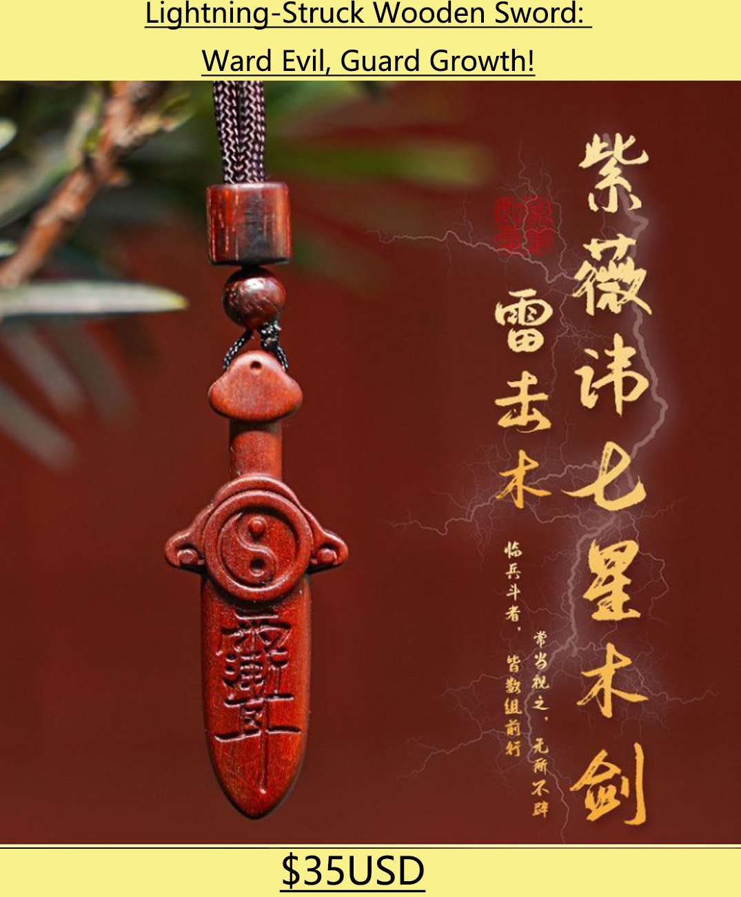 Thunderstruck Wood Seven-Star Sword Amulet – Taoist Luck & Protection